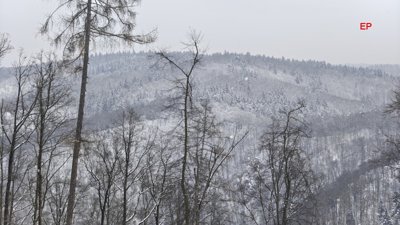 ...a užíváme si výhledů na zasněžené stráně na protějším břehu Svitavy.