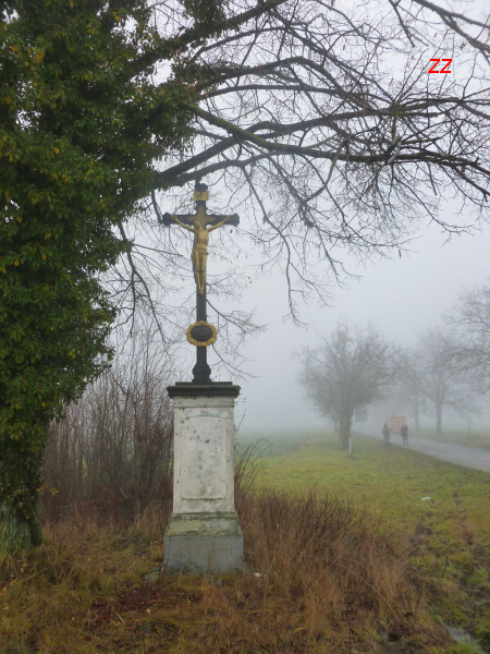 Do Křenovic, cíle naší vycházky, jsme se kvůli velkému blátu na polních cestách raději vydali od kříže po hlavní silnici