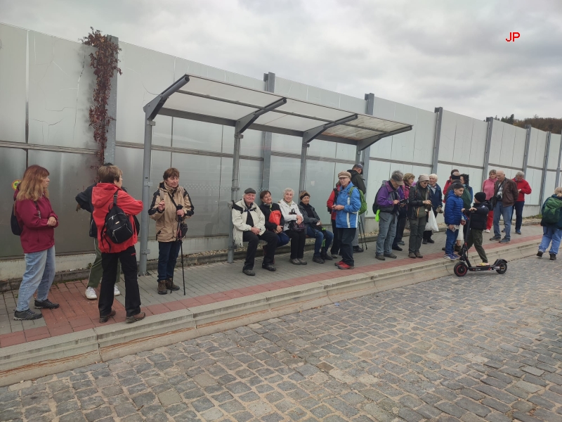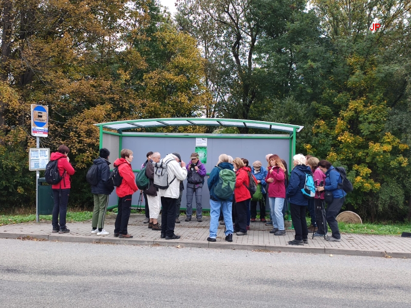 Na zastávce Lomnice, Brusná rozc. vystupujeme z autobusu. Nejprve provoláváme třikrát Zdar a pak nás vedoucí seznamuje s průběhem dnešní vycházky.