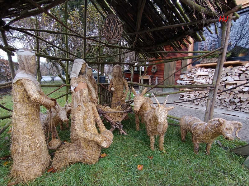 Před útulnou hospůdkou Zamilec nás uvítal pěkný slámový betlém...