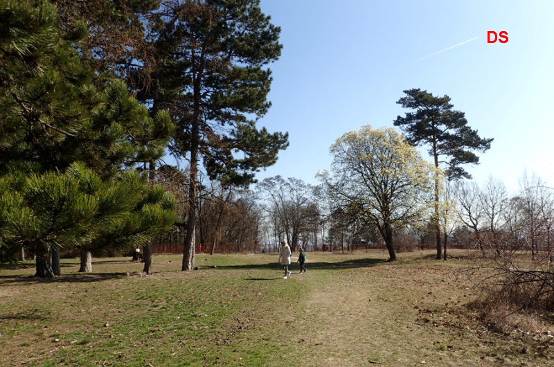 Jsou zde pěkné borovice a krásně rozkvetlá jíva