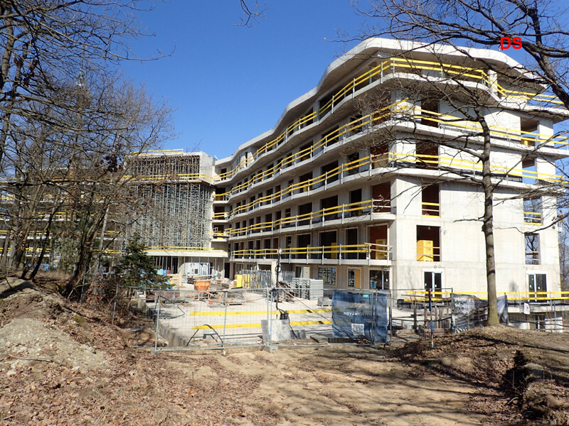 Staví se zde polyfunkční objekt bydlení hotelového typu a apartmánů „Nová Myslivna”