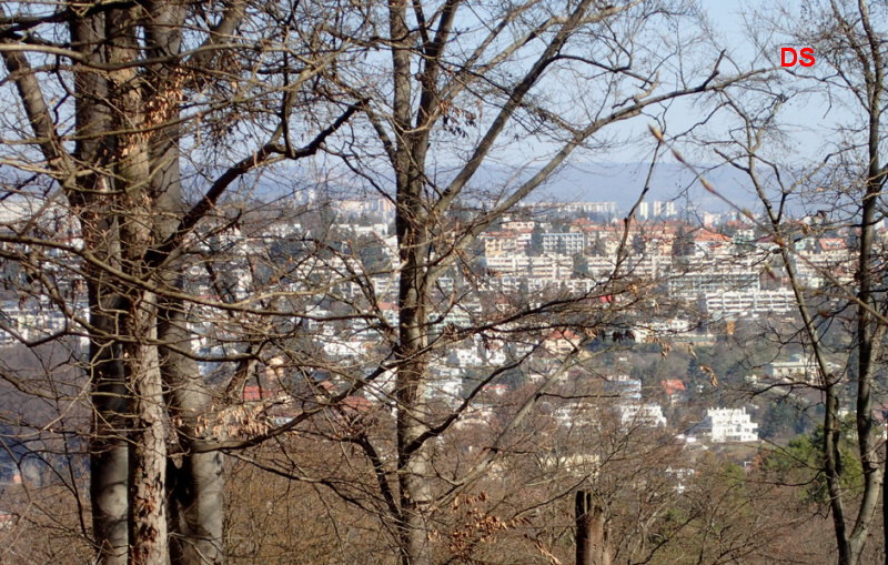 Pokračujeme lesní cestou s pěkným výhledem na Brno
