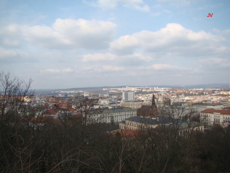 Následují další výhledy – kostel sv. Jakuba a za ním sídliště Vinohrady. Výhledy jsou dnes přepychové. Malá bílá tečka v levém horním rohu je hotel Velká Klajdovka.