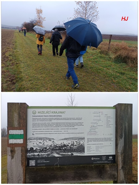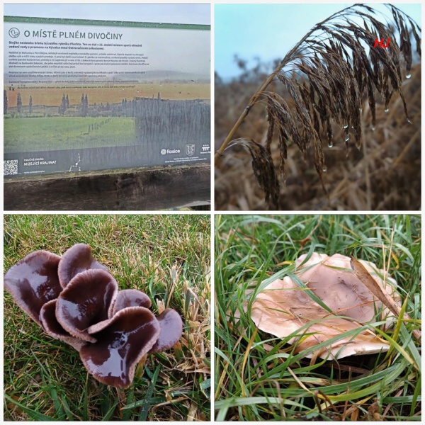 Zastavujeme se u vyhlídky na bývalý rybník Plachta, který se stal místem sporu kvůli vedení vody z pramene Kývalka mezi obcemi Ostrovačice a Rosice