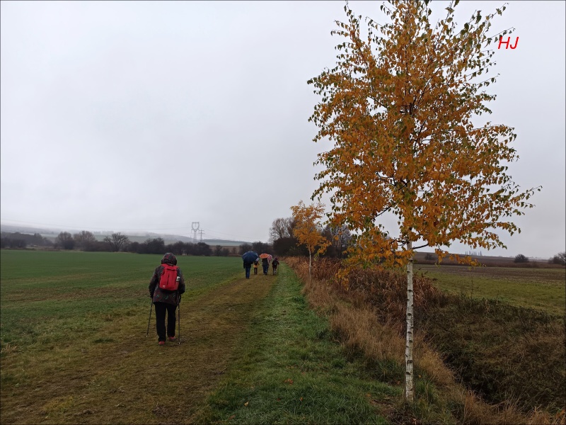 Krajina dříve plná rybníků a bažin je plná vody i dnes. Jdeme po travnatém okraji polní cesty, kterou lemuje nová lipová alej