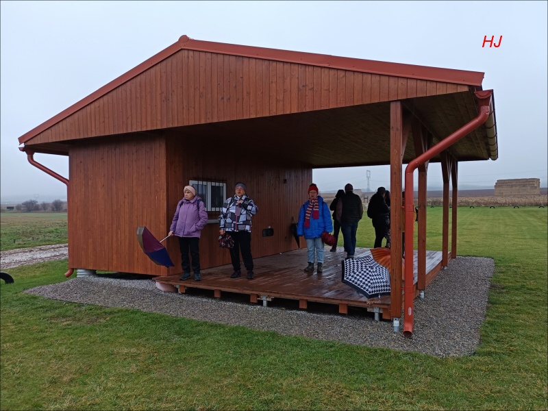 Zastavujeme se v přístřešku budovy místního modelářského letiště, abychom chvíli spočinuli a občerstvili se