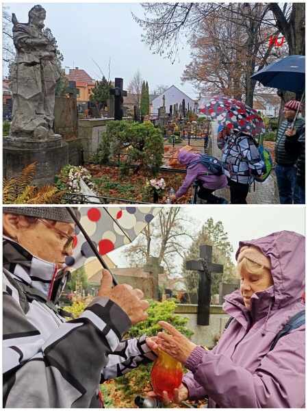 Na hřbitově v Rosicích je další naše zastávka u hrobu Medy Mládkové, která je pochována vedle svého druhého manžela Jana Viktora Mládka,