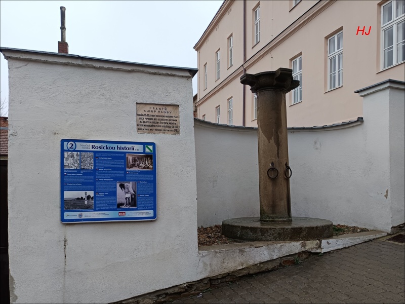 Další naše kroky vedou k pranýři, který byl místem hanby do roku 1752, kdy byl v Rosicích zrušen hrdelní soud