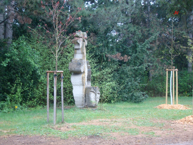 Plastika Zdravé srdce štěstím člověka od Ctibora Bayera. Stále prší a vycházku zde předčasně končíme s tím, že se bude letos ještě jednou opakovat. Pravděpodobně bude rozdělena na dvě kratší vycházky.
