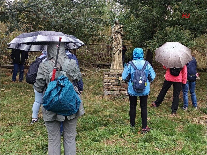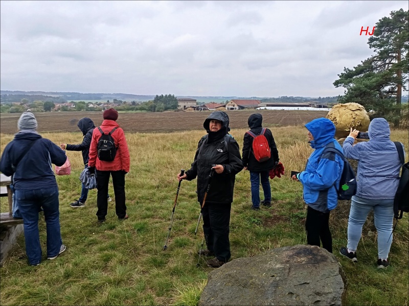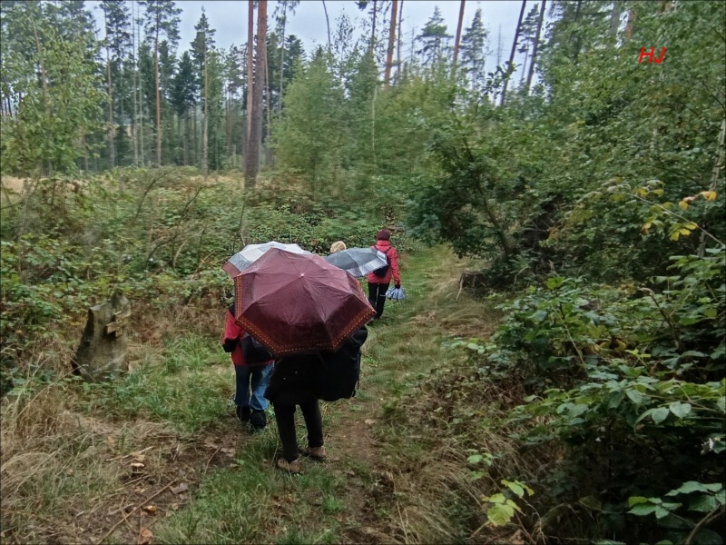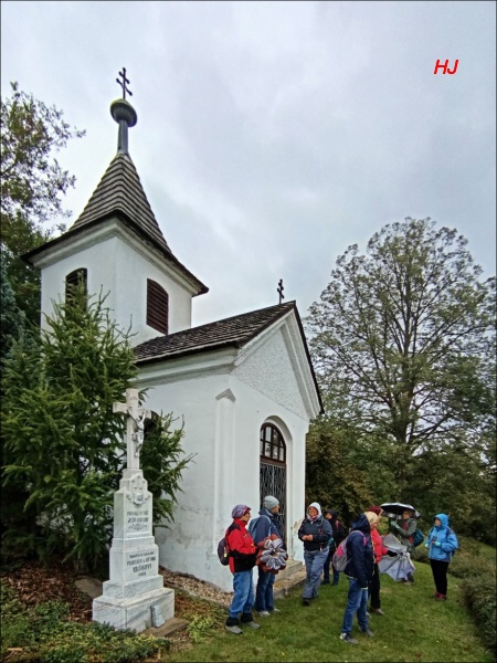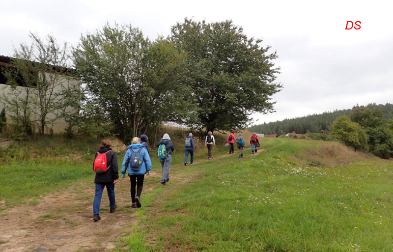 V obci Lubné, jedné z nejmenších obcí Tišnovského regionu, zahajuje vedoucí vycházku pro 12 turistek