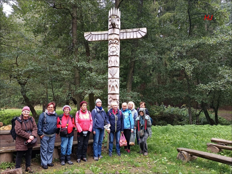 Naše vycházka končí a tak jsme se ještě před odjezdem na památku vyfotily u Totemu skautské základny