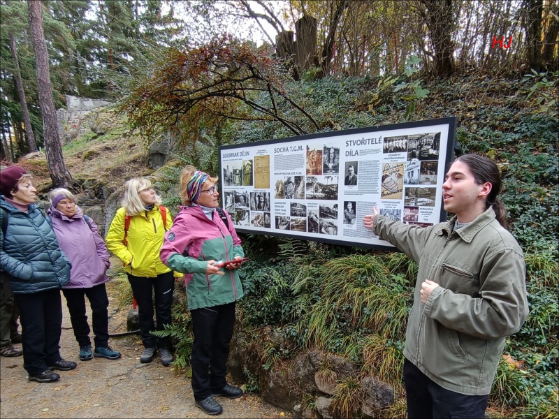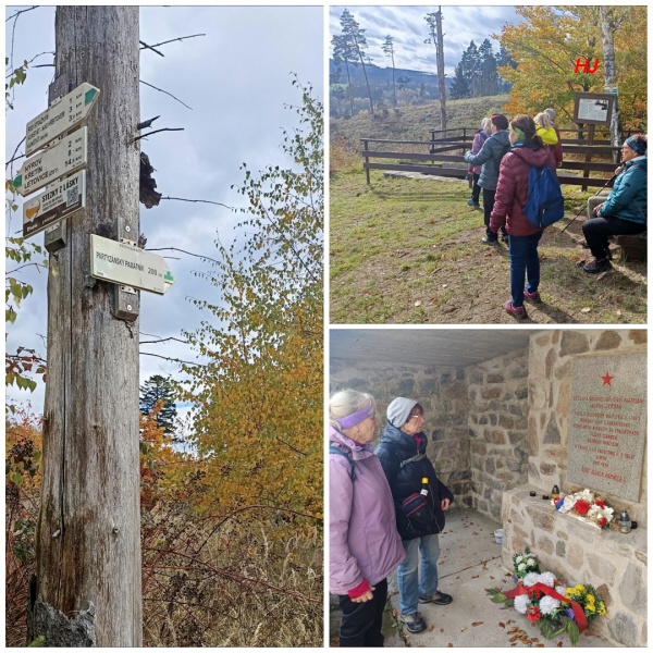 Další naší zastávkou je Partyzánský památník, kde se kocháme výhledy a studujeme historii tohoto místa