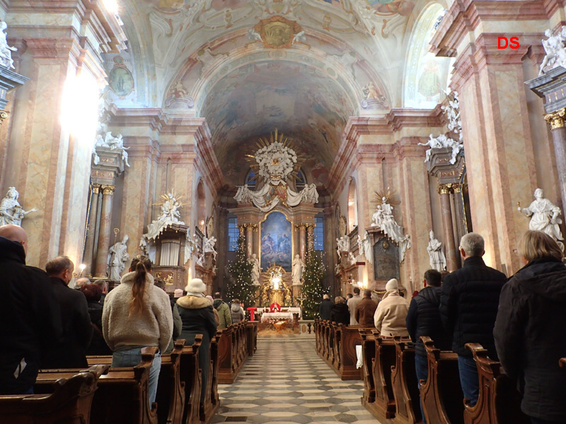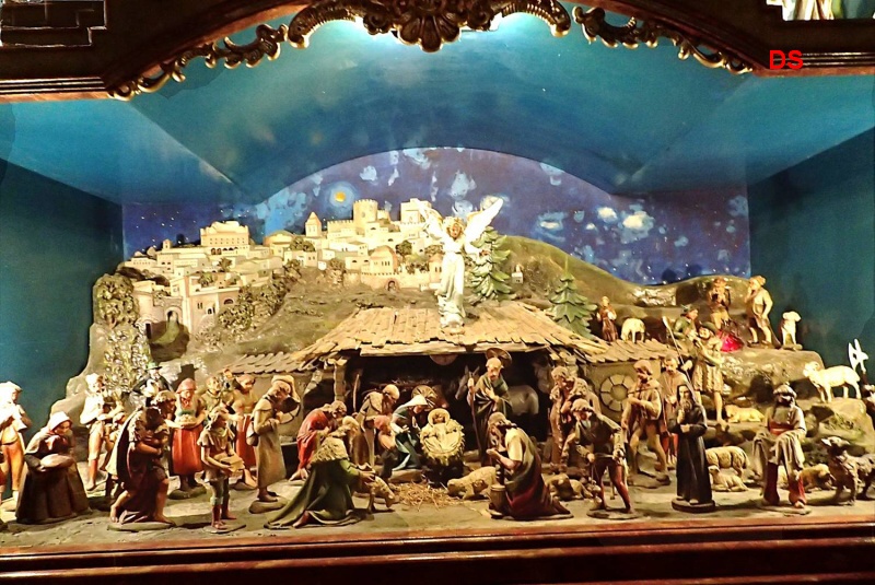 Jdeme se podívat do boční kaple, kde jsou Vranovské jesličky s mechanickým pohonem a hudebním automatem, z lipového dřeva od akademického sochaře Františka Bartoše