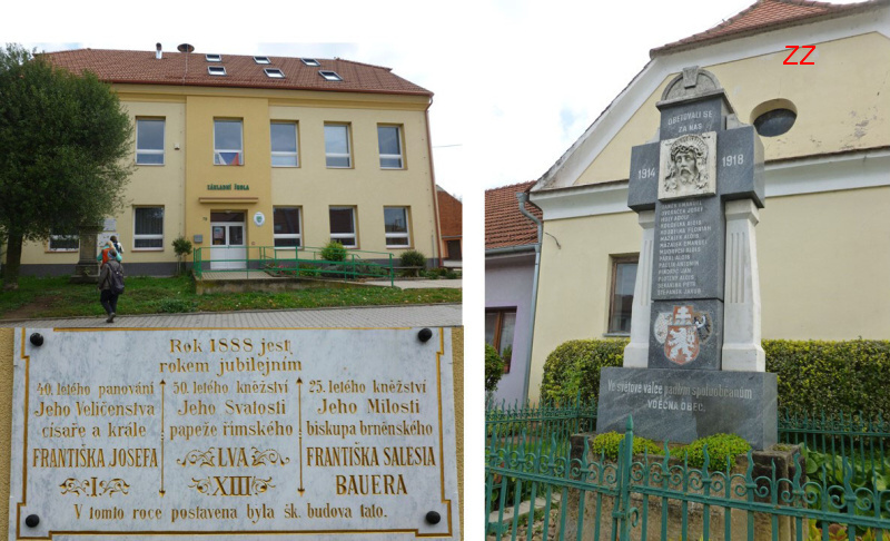 ... před kterým se můžeme na informačním panelu seznámit s historií obce a jejími zajímavými památkami