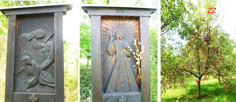 ... která je tvořena 15ti zastaveními pro zamyšlení, uvolnění a meditaci a kolem níž jsou ovocné stromy starých odrůd