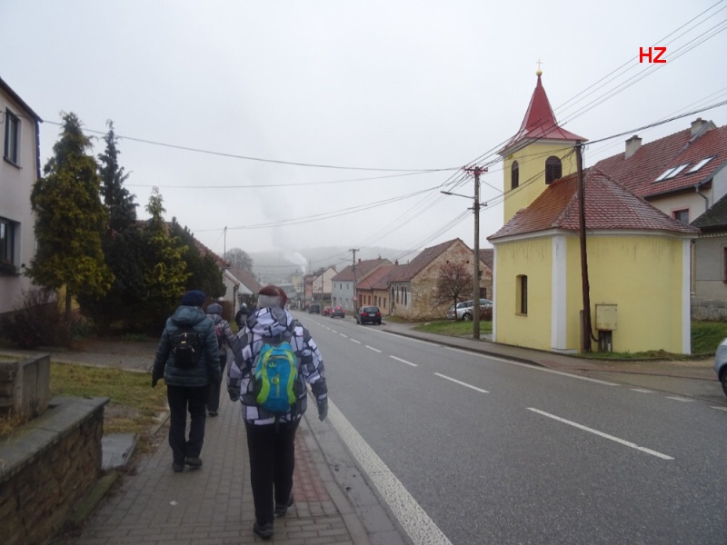 Prošli jsme tedy zpátky celou obcí, přešli na polní cestu, ale to co na ní je vidět není voda ale led