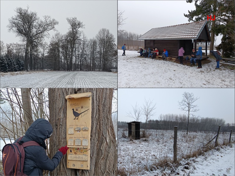 ... kde od myslivecké chaty vidíme tři vzrostlé topoly bílé, které jsou vyhlášeny památnými stromy a zastavujeme se na svačinku