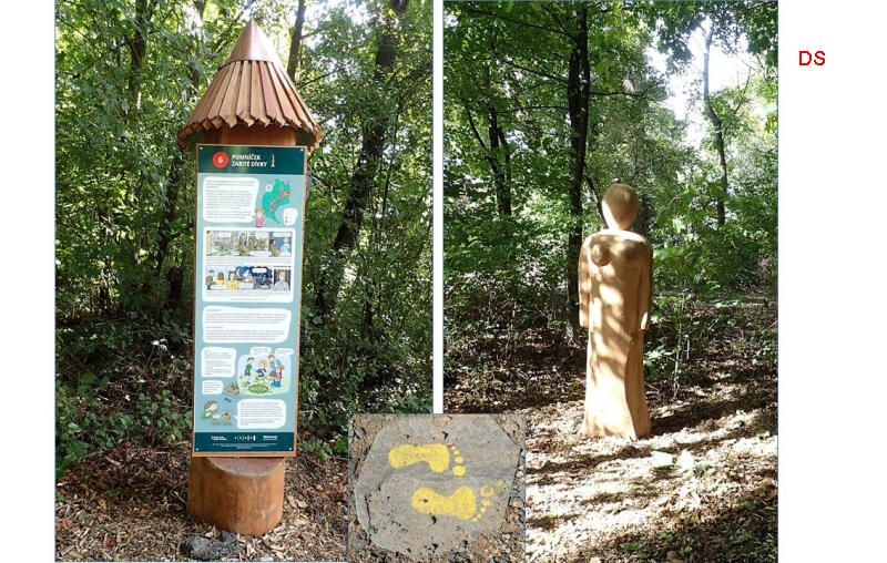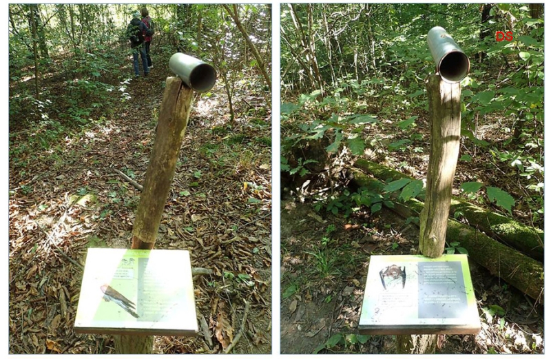 Z lesní cesty lze vidět pomocí kukátek živočichy, schované v lese.