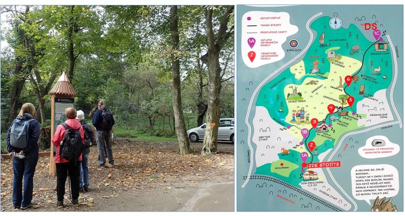 Před restaurací U Divošky přicházíme k prvnímu zastavení NS s mapou.