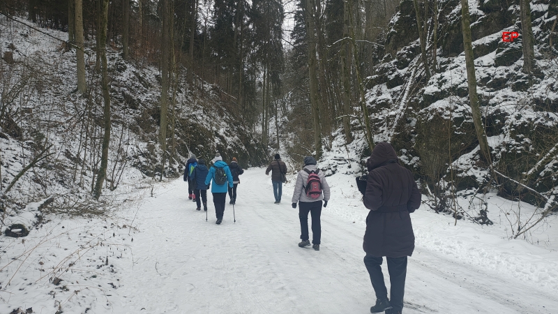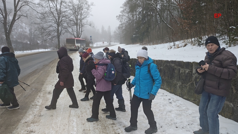 Zasněženou krajinou nás autobus přivezl až na začátek Suchého žlebu,...