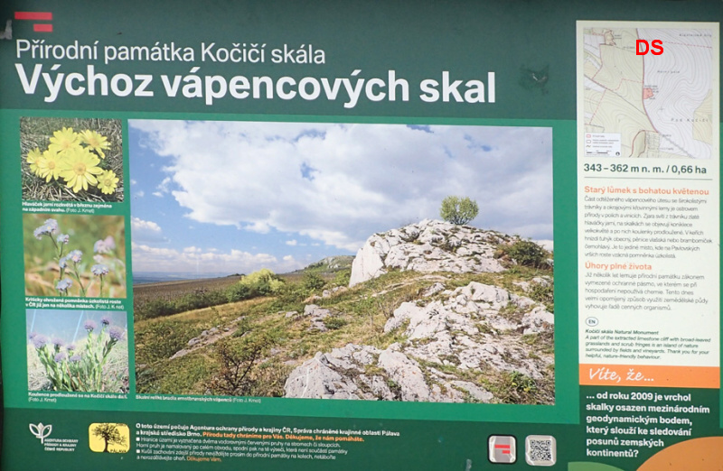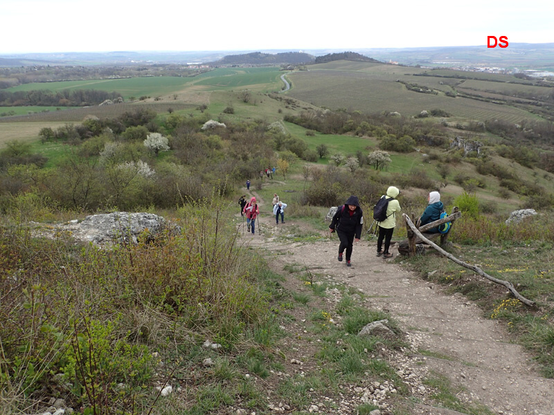 Po schodech sestupujeme na rozcestí u skály Martinka, abychom zkontrolovali skalní útvar Velký špunt. Potom sestupujeme do Horních Věstonic, kde naše vycházka končí
