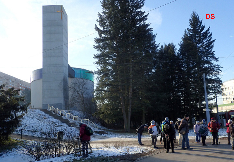 Na Lesné, pod kostelem blahoslavené Marie Restituty, dokončeným v roce 2020, zahajuje vedoucí vycházku