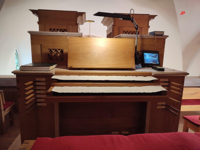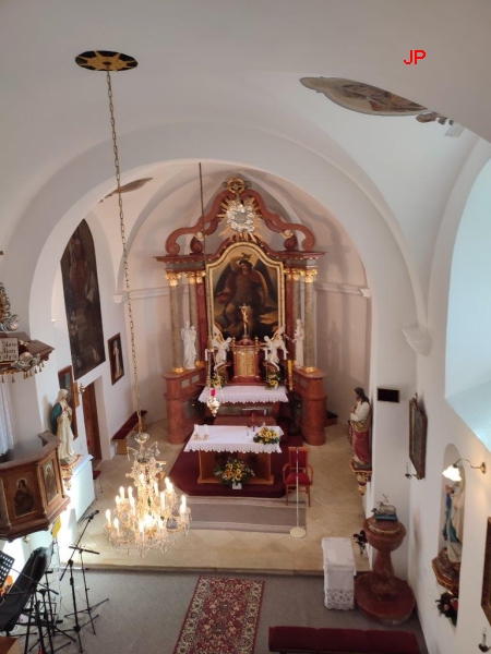 Krásný pohled do interiéru je z kůru: vidíme oltář s obrazem sv. Michaela archanděla,