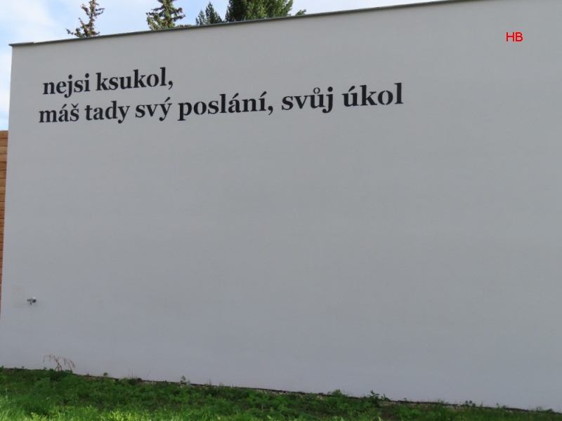 Zastavujeme před domem, kde žije sochařka Tamara Divíšková, vidíme zde i malou ukázku jejího díla,..